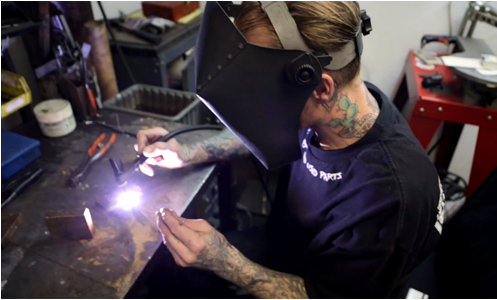 To me, I think the product should be smooth to the touch and pleasing to the eye – and work well. Not just one or the other. And if it doesn’t work well, the customer lets us know. It’s not working for them, and we work with them until it gets working the way they need it to work. That’s our goal. Stay real with it. We make our own armature bars. It’s all hand buffed, we tumble the frames after they’re all buffed and smooth to make them finish basically all the same. Nice and even. The corners all smoothed and rounded. But it’s still all the hand love that goes into each polishing and finishing of it.