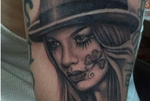 When I first got into tattooing, I was kid in a foster home. Both of my parents were gang members. They ended up in prison and I started rebelling and running away and I remember I was in juvenile hall and I saw this kid and he was like a cholo kid. He’s like 16 or 17. I was only 12 but we ended up in the same cell waiting for court, and he had all these tattoos all over him. He had like his neighborhood and he had a girl’s head and all that stuff. I was just like amazed with his tattoos and I was like, hey, let me check this out.